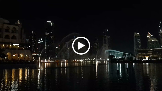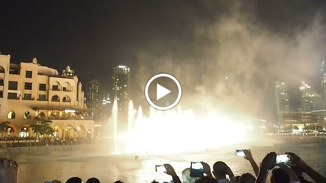 A Dubai Mall parjában, a Burj Kalifa mellett sötétedés után félóránként ingyenes szökőkút show-val szórakoztatják a közönséget...